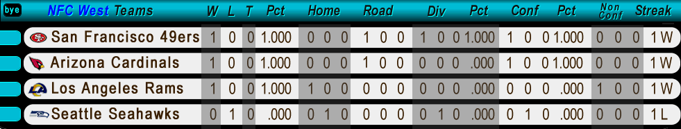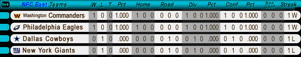 Home Weekly Schedules Team Schedules 2025 Standings Next Game Home Fields Bye weeks About ☰